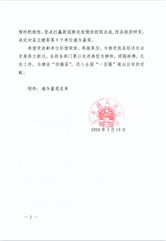 現在,在大地集團防疫一線,黨旗高高飄揚,黨徽熠熠生輝,黨員沖鋒在前,已形成一股“紅色力量”,將抗擊疫情工作有序、穩步向前推進。大家堅信戰勝疫情、全面復工復產的那一天就要來臨了。就在今天,大地集團因防疫工作成績突出、貢獻重大,受到縣政府的通令嘉獎。