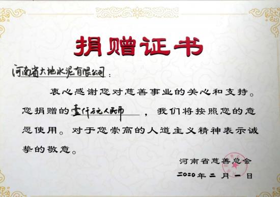 2月1日,河南大地集團黨委通過河南省慈善總會向平頂山市和寶豐縣各捐贈500萬元,用于平頂山市和寶豐縣新冠肺炎疫情防控工作。