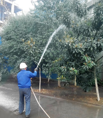 燒成車間員工正在對樹木進(jìn)行“洗臉”