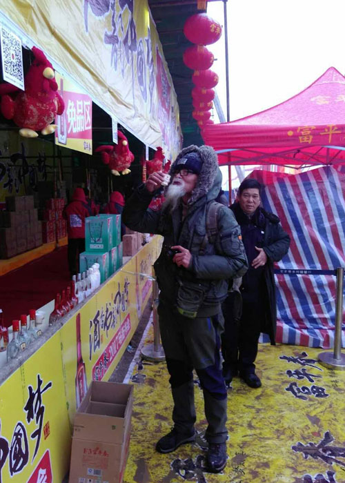 一位老人沉醉在品味美酒之中 同時,開展掃碼抽大獎活動,共設置七個獎項,最高獎項為價值528元富平春尊品原漿一壇,數萬份獎等你拿,綜合中獎率達98%。書會現場開展的系列活動不斷吸引著四面八方的來客蜂擁而來,掃碼的、抽獎的、品酒的,火爆場面嗨翻天;開展你有宴席我送禮活動,凡在馬街書會現場,預訂2017年宴席活動的,當場送價值528元尊品原漿1壇,并有豪禮相送,不斷為未婚青年送禮包,送驚喜,送實惠;開展停車送酒活動,為廣大趕會群眾提供停車點,每停一輛車送停車券一張,憑停車券可免費領取富平春F6一小瓶;開展金雞迎春買贈酬賓活動。凡在馬街書會期間,購買富平春華貴、F6、F3等酒品者,贈吉祥物金雞一個,恭祝金雞獻瑞,新年大吉!……