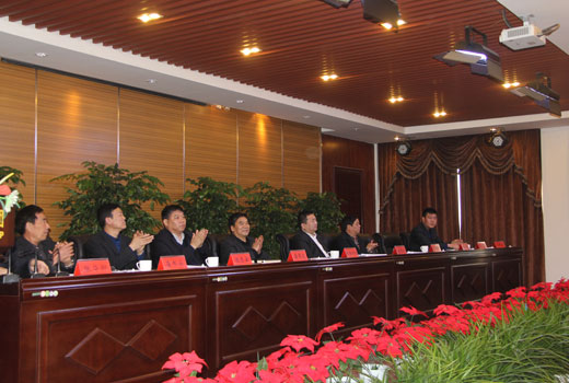 集團(tuán)領(lǐng)導(dǎo)在主席臺(tái)就座