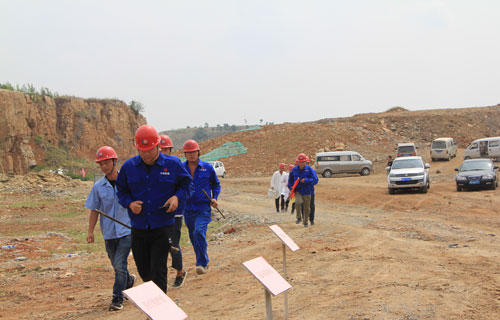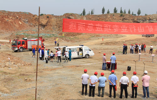 6月30日上午,大地公司在李莊水泥灰巖礦舉行邊坡坍塌事故應急救援演練??h政府黨組成員、安監局局長步國旗,副局長秦丁琪,張八橋鎮副鎮長王宏偉、大地集團領導趙中要、丁雙勝等出席和觀摩了演練,全縣各非煤礦山企業安全負責人和安管人員參加。 上午10點鐘,演練開始,根據邊坡坍塌事故應急預案,李莊礦山總指揮接到求救電話后,立即啟動應急預案,各應急救援小組在接到通知后,立即趕赴事故現場,有序開展救援。警戒組設置警戒帶隔離危險區,疏散人員,安全員在救援過程中時刻觀察邊坡險情;搶險救援小組持鐵鍬、醫藥箱趕赴現場救援;通訊聯絡組立即聯系120急救中心、119消防大隊,趕赴事故現場進行施救;交通運輸組疏散人員,確保安全通道出口暢通。演練過程中各應急小組各司其職、協同作戰、反應迅速,整個演練過程在快速、緊張、有序的氛圍中進行,圓滿完成了各項預定任務。 最后,縣安監局局長步國旗對本次演練進行了點評和總結,他指出,演練從策劃方案、事故場景設計、應急裝備籌備、模擬演練等方面都進行了精心組織,達到了預期效果。他要求:一、要以此次演練為契機,加強汛期安全管理,加大巡檢力度,做到防患于未然。二、要進一步加大應急救援工作的宣傳、培訓和教育力度,定期開展演練活動,提高全員應急救援水平,做到在突發事故面前判斷準確,快速反應,把損失降到最低限度。