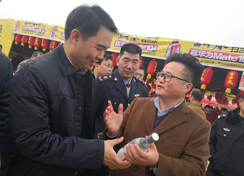 2月26日(農歷正月十一)上午,寶豐縣委書記張慶一在馬街書會檢查工作時,來到富平春展臺前了解賈湖酒業為馬街書會的服務情況(上圖為賈湖酒業集團銷售公司總經理宋子玉向張書記匯報中原味道系列的釀造工藝)。 賈湖酒業是河南大地集團旗下集白酒科研開發、生產釀造、銷售服務為一體的國家大型企業。多年來,公司在發展壯大的同時,主動承擔社會責任,努力回饋社會,積極投身于城市建設、文化教育、扶貧濟困等各類社會公益活動,先后開展“愛心助考”“萬壇美酒送父親”“富平春”杯拳王爭霸賽、冠名贊助“平頂山市全民健身大賽”等一系列活動。受到了社會各界的熱烈反響和廣泛好評。
