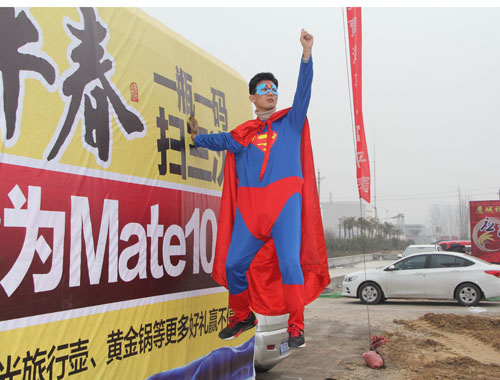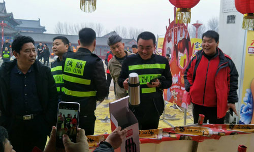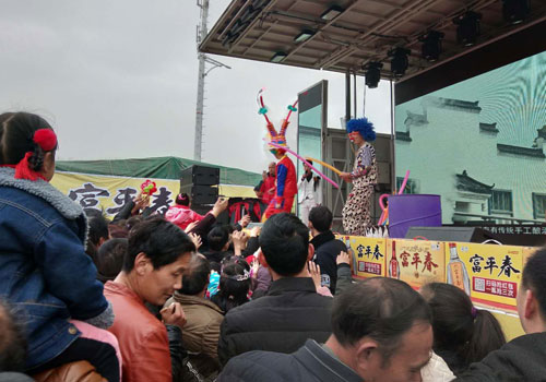中獎?wù)咴跻粋€“樂”字了得 隨著涌動的人潮,筆者來到書會現(xiàn)場,沿路兩旁掛滿了富平春的彩色吊旗和大紅氣球,把會場裝扮得格外熱烈和喜慶。會場中間擺滿了賈湖酒業(yè)義務(wù)為廣大商戶和藝人搭建的暖心帳篷。更引人注目的是那招人喜愛的瓶模,穿著不同色彩,不同形狀的衣服分散在會場各個角落,并不時地與大家握手互動,引得許多群眾與之合影留念,更是惹得小朋友們歡欣不已。更為給力的是那神奇驚險的大巴懸浮超人,不時與現(xiàn)場群眾爭相留影互動。