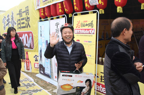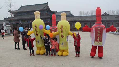 可愛瓶模惹得小朋友們歡欣不已 在劉蘭芳藝術(shù)館對面富平春宣傳主場地,更是人山人海,摩肩接踵,品酒的、掃碼的、領(lǐng)獎的,那火爆場面真是嗨翻了天,不時傳出主持人宣布中獎的消息,引來一波又一波的群眾圍觀,“哇塞!我中了一個黃金鍋,趕快發(fā)朋友圈”“富平春喝著真美”“富平春,我愛你”不時聽到現(xiàn)場朋友的歡呼聲。在趕會游玩的同時,隨便拿手機掃一下,就能中得實實在在的大獎,那是怎樣的一種心情、激動、高興、感恩……,怎一個“樂”字了得!