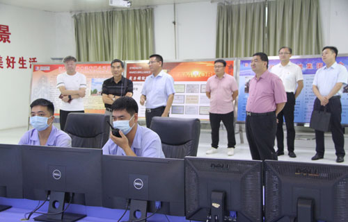孫丙安一行首先來到大地公司中央控制室,聽取集團(tuán)領(lǐng)導(dǎo)關(guān)于企業(yè)產(chǎn)能規(guī)模、技術(shù)裝備、工藝流程、環(huán)保改造等方面的情況介紹。