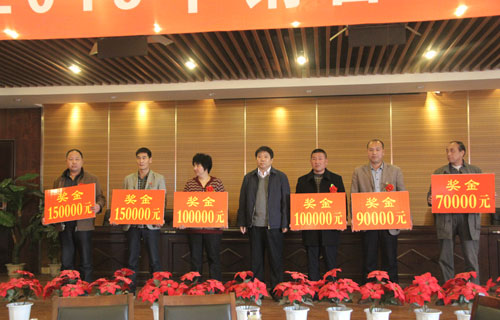 3月16日上午,河南大地集團2013年銷售工作總結暨表彰大會在大地公司北會議室勝利召開,來自安徽界首、河南駐馬店、漯河、南陽等地的200多名經銷商代表及集團領導、各分公司及有關單位負責人歡聚一堂,暢敘友誼,共謀發展。會議由集團黨委副書記閆中安主持。 會議首先聽取了集團副總裁、銷售公司總經理陳志云所做的《2013年銷售公司工作報告》,對一年來銷售公司所做的主要工作進行了全面回顧,指出了目前存在的問題,并對2014年的銷售工作作出安排部署。一、堅持以經銷商為主的銷售模式,發展優秀經銷商,提升市場占有率。二、堅持以32.5級水泥為主、42.5級水泥為輔的銷售定位。牢牢抓住農村市場,重點區域保持絕對占有,重點市場絕不退讓。三、發揮產品多樣化的優勢。水泥、商品混凝土和粉煤灰的銷售互為補充、互為支持。四、抓工程抓項目,掌握項目信息,提高工程項目的占有量。五、秉承“客戶至上,誠信服務”的方針,牢固樹立“把用戶當親人當朋友,用戶都是自己人”的服務理念。 會上,崔泉發總裁宣讀了《關于表彰2013年度優秀經銷商的決定》。對榮獲2013年度的優秀經銷商進行了頒獎。 集團黨委書記張懷平為榮獲得30萬元大獎的優秀經銷商頒發獎牌和獎金。 接著,集團相關單位負責人、區域經理代表分別上臺做表態發言,大家紛紛表示,要勇于創新,敢于出手,加大宣傳力度,提高服務質量,為全面完成2014年的各項工作任務而努力奮斗! 宋春紅、張云龍等優秀經銷商代表相繼上臺作典型發言,與大家共同分享經驗和成果。他們一致認為,大地水泥質量一流,服務到位,受到了廣大用戶的好評和認可。通過與大地的合作,切實得到了實惠,收獲了豐厚的回報,期待與大地更長建立更長期廣泛的合作關系。 最后,集團黨委副書記閆中安作了總結講話,他對銷售公司一年來所取得的成績表示肯定,并對2014年的工作提出了更高的要求。他希望銷售公司要開闊思路,創新思維,按照“勇于創新、規范管理、發揮效能、全面提升”的指導思想,增強服務意識,提高服務質量,加大宣傳力度,充分發揮大地水泥的質量和品牌優勢,進一步開拓市場,努力培育優秀經銷商和專營經銷商。希望經銷商朋友們加強與大地的合作,攜手共進,互利共贏,共同打造大地集團的美好明天。 此次大會不僅是對銷售工作的總結表彰會,更是一次2014年銷售工作動員誓師大會,與會經銷商紛紛表示,要以這次會議動力,珍惜榮譽,加倍努力,全力以赴完成2014年銷售任務,報答大地集團領導對銷售工作者的支持和厚愛。