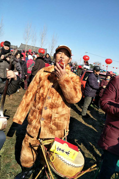 這會累了!停下來歇一會!來自安徽界首市的老藝人一曲唱罷,拿起一瓶富平春酒準備喝上兩口。筆者上前問起美酒的來歷,他告訴筆者地上擺著的幾瓶酒都是人家富平春酒業公司人員免費送的,還有掃碼獲得的。 經過采訪得知這位老藝人是安徽省界首市仁寨鄉幸福村的,名叫陳玉雪,是第一次來趕馬街書會,這次他們是組團來的,聯合了附近14個民間藝人一起來趕馬街書會。他18歲開始學戲,今年61歲了還在經常參加當地的一些演出活動。他在書會上亮藝演唱河洛大鼓《打棒槌》、《劉四姐挨打》等段子。 “經常喜歡喝點酒,這不唱累了,喝一點提提勁,再唱!”他還說馬街書會這個大平臺太好了,還有這么多愛戲的群眾,還有熱心周到的服務,在會上還得到了這么好的美酒禮物,明年的書會一定還要來。 古老的馬街書會作為曲藝人的圣地,每年都召喚著他們前來獻藝交流,富平春酒業在書會大派送活動中惦記著這些來自全國各地的民間藝人,為他們送上了富平春美酒來為他們演出助興,拿到酒的藝人都非常高興,一個勁的夸贊富平春酒業想得真周到。