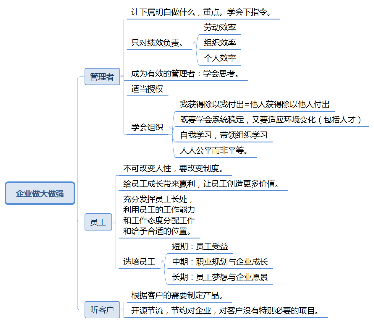 為期5天的中旭培訓學習結束了,非常感謝公司對我的信任,為我提供了這次寶貴的學習機會。管理者的五項修煉,使我收獲很大,自己對管理這件事和管理者資格角色都有了更深刻的認識,這些知識對于今后的工作有很大的幫助和提升。 管理者的五項修煉,從基層,中層到高層管理者,全面的講解了什么是管理者,如何成為一名合格的優秀的管理者。不僅使我對當下的工作有了新的認識,也對未來的的工作有了更明確的方向。同時,對集團的很多決策有了深入的理解,對企業文化也有了新的認知,加深了對企業的認同感。 以下是這5天培訓的一些心得體會: 一、管理者與管理的目的 管理者的作用是解決問題而不是成為問題,管理是為了解決效率問題。 管理者不是每天坐在辦公室里思考問題,而是要發現問題并能夠解決問題。沒有調查,就沒有發言權。所以要經常與上下級溝通,發現問題才能弄清楚問題的根本原因。與上級溝通能夠更好的理解領導布置的任務,與下級溝通能夠了解每個人的長短處,分工才能讓正確的人去做正確的事。 二、通過改變制度從而改變人的行為 制度就像河道,人就像河道里的水,水本身沒有好壞,人也一樣。 制定一個適合自己公司門的制度不僅可以約束員工,同時還能激勵員工。每個企業和部門都有不同的實際情況,制定制度不能生搬硬套,沒有最好的制度,只有適合的制度。 三、管理始終為經營服務 一般人們總是說經營管理,在培訓之前我也一直以為是一件事,通過培訓學習才知道,兩者有著本質的區別。 經營解決收入問題,管理是為了控制支出;經營是為了增大被減數,管理是為了減小減數;管理做的再好也不會做到不支出,但是經營不好卻可能沒有收入。經營的第一要素是客戶價值,公司對外經營有客戶,部門對內經營一樣有客戶。一條生產線、上下游部門之間、平行部門之間都是彼此的客戶,經營好各部門的客戶才能有效合作、減少浪費和失誤,才能真正做到減小減數,提高公司利潤。 四、管理事和領導人 俗話說,鐵打的營盤流水的兵,其實就是說的流程管理。 一個公司,一個部門,一個崗位,人員都在不停的流動。通過制定一個固定有效的流程,可以很好的避免因為人員流動造成的重復培訓浪費、提高工作效率。比如以我現在的崗位中控操作員為例,按照操作規程操作,新進的學徒也可以很快掌握操作的要點重點,學習起來就事半功倍。 五、管理追求對等而非平等 因為分工不同,每個人承擔的責任是不一樣的,所以每個人的回報也是不一樣的。在看到自己和別人回報的差別時應當首先想一下我們擔當到的責任是不是一樣,付出是不是一樣。責任,權力,利益相互平衡,管理才能平衡,任意一點失衡,人們就會通過犧牲另外兩點來彌補。 另外,通過學習,我對企業如何做的更好有了初步的認識,如下圖: