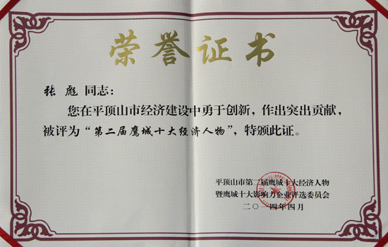 集團(tuán)董事長(zhǎng)張彪被授予第二屆鷹城十大經(jīng)濟(jì)人物