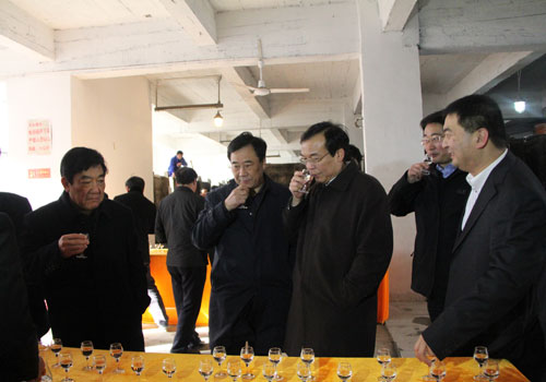 12月10日上午,漯河市委書記馬正躍、市長曹存正帶領市直各有關局委及各縣區主要領導到富平春酒業公司調研。舞陽縣委書記李亦博、縣長宋耀生、大地集團董事長張彪陪同調研。 在公司領導的陪同下,馬書記一行先后來到正在施工的酒文化館、地下酒庫、科技大樓、綜合車間等地,聽取了公司總經理趙書民關于企業生產經營、項目建設、投資規劃、發展戰略等情況的匯報。馬書記邊走邊看邊問,詢問企業有沒有遇到什么困難?并對酒文化館產生了濃厚的興趣。當看到壯觀的地下酒庫里擺放的酒罐時,馬書記十分高興,連聲問道:“這是用什么材質做的?酒罐如何密封?”在酒香撲鼻的原酒庫,馬書記一行品嘗了公司年代久遠、綿甜醇和的木海美酒,得到了大家的交口稱贊。 隨后,馬書記一行來到一樓辦公大廳,品嘗了公司新研發的富平春貴系列、藏系列、紅系列新品酒,他們對酒的味道、顏色、包裝都給予了較高的評價。 馬書記對富平春公司所煥發出的勃勃生機給予了充分肯定。他表示,市委、市政府將全力支持企業的發展,幫助企業解決發展中遇到的困難和問題。他希望富平春公司加大自主創新和技術研發,立足品牌和管理優勢,不斷推陳出新,不斷做大做強,生產出更多質優的美酒佳釀,滿足廣大消費者需求,為漯河的經濟發展作出新的貢獻!