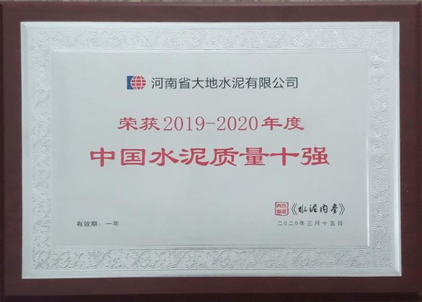 首頁 >> 走進大地 >>資質榮譽 >> 榮獲2019-2020年度中國水泥質量十強