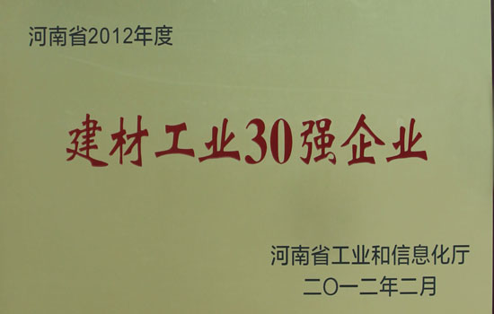 首頁 >> 走進大地 >>資質榮譽 >> 河南省2012年度建材工業30強企業